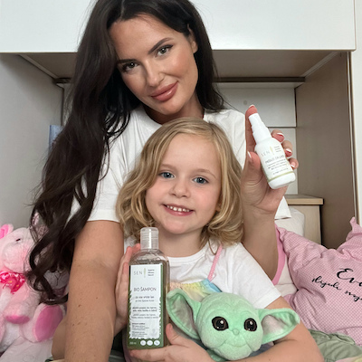 Olje za lase poskrbi za dodatno nego in sijaj, hkrati pa pomaga, da so lasje mehki, voljni in enostavni za razčesavanje. Pred odhodom v šolo ali vrtec lahko lase popršite z rahlim nanosom pršila, ki lasem podari občutek lahkotnosti, svežine in prijetnega naravnega vonja.