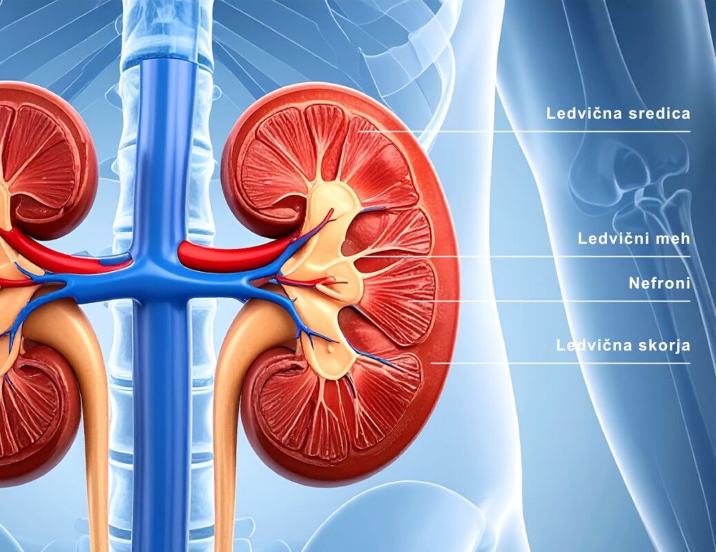 Ledvice sta parni organ v obliki fižola, ki ležijo tik pod rebrnim lokom ob hrbtenici. Njihova osnovna naloga je filtracija krvi; vsak dan prefiltrirajo do 180 litrov krvi in izločijo približno 1,5 litra urina. Ta zapleten proces zagotavlja odstranjevanje toksinov, presnovnih odpadkov in presežkov tekočine, s čimer ledvice ohranjajo notranje ravnovesje organizma.